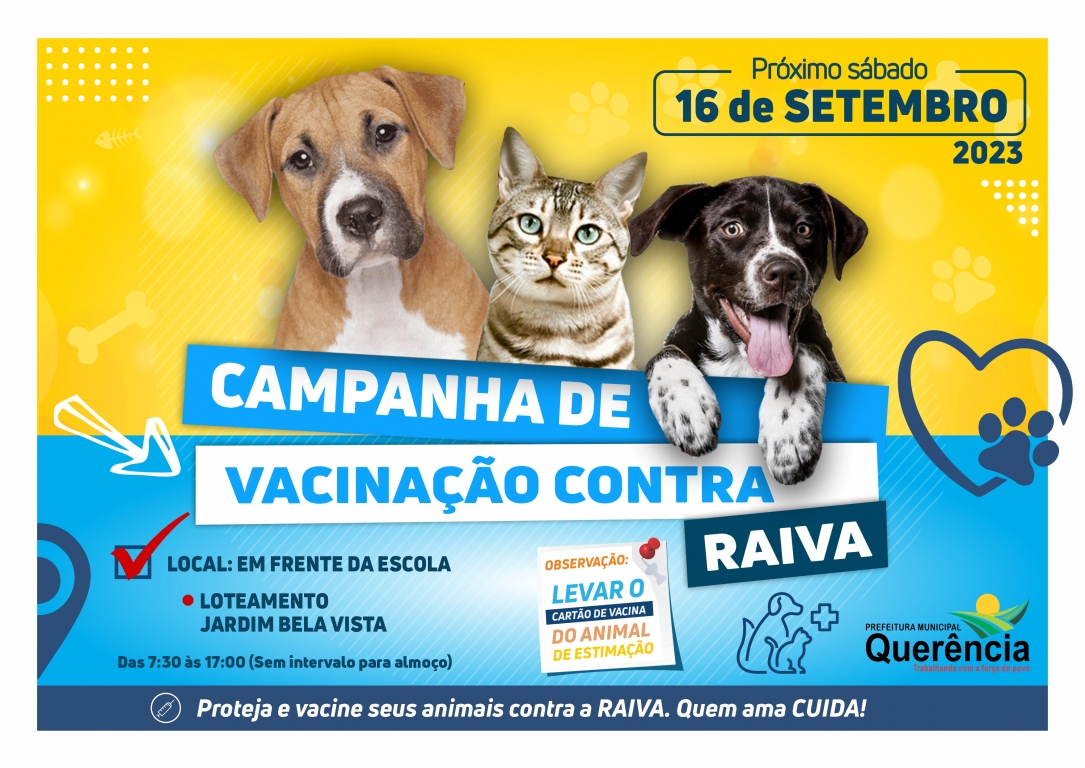 No próximo sábado (16 de Setembro), será realizado a Campanha de Vacinação contra a Raiva.