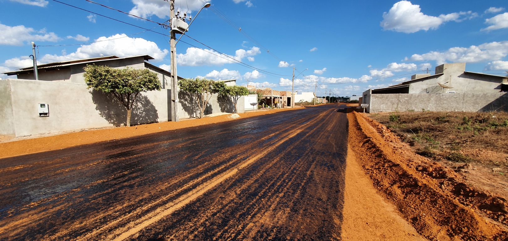 Na primeira etapa, várias ruas já receberam o serviço de terraplanagem. Nessa segunda etapa, a equipe da secretaria de Obras vem efetuando a imprimação para receber a pavimentação asfáltica.
