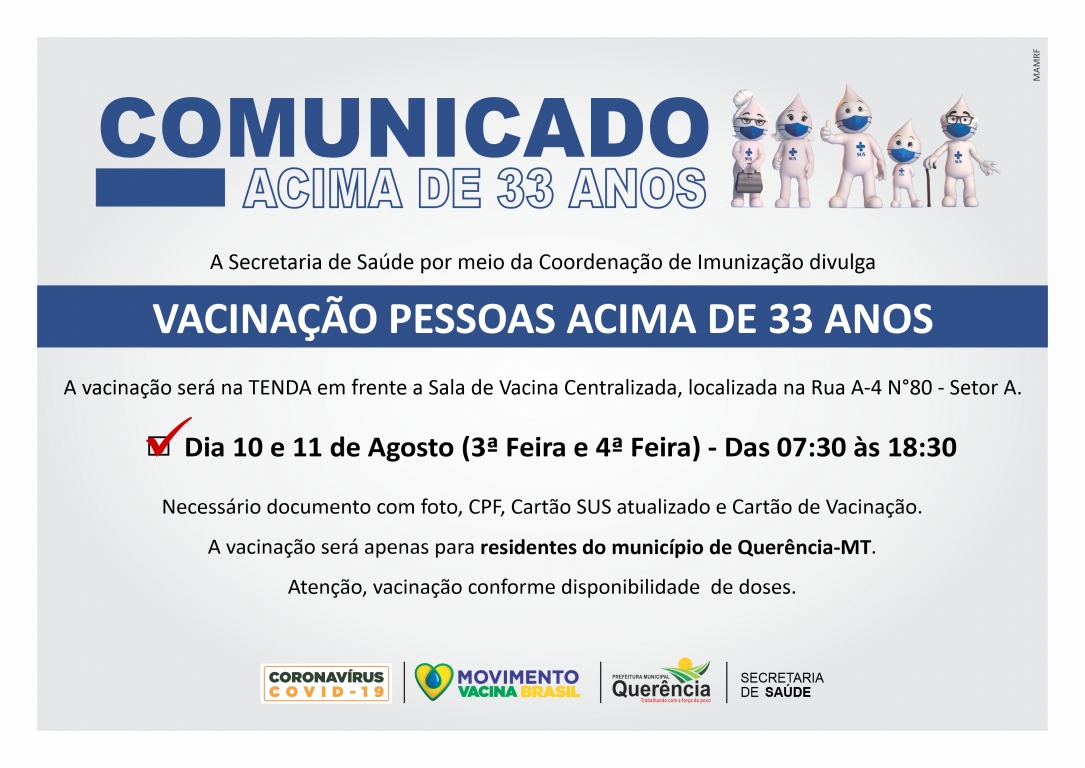 VACINAÇÃO CONTRA A COVID-19 - ACIMA DE 33 ANOS